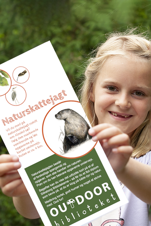 Tag skattekortet under armen og begiv jer ud på naturskattejagt om Almind Sø. Undervejs på den 4 km lange gåtur finder I små opgaver på skattekortet, der gør jer klogere på dyrene og naturen omkring Almind Sø. Se blandt andet om I kan finde de små krible krable dyr, om I kan løbe hurtigere end en snog, eller om I kan løse de små ordgåder.