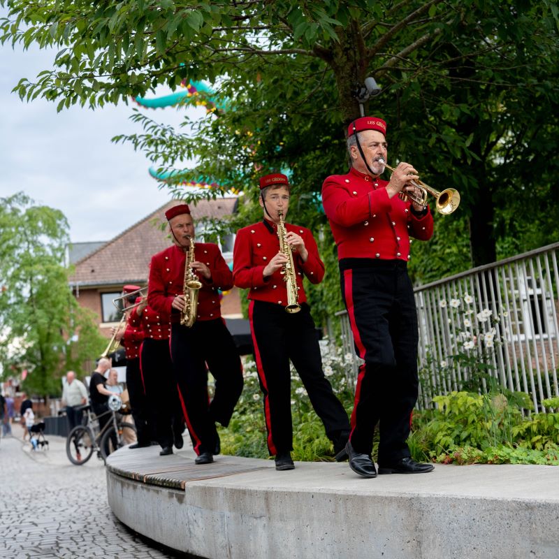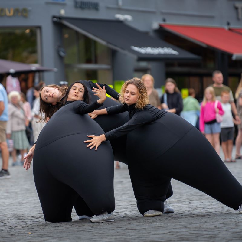 Følg bare med dem, hvis du ønsker at opleve deres spontane kreativitet og livsglæde midt på en almindelig gade, hvor de interagerer med vores byens borgere. Her bliver teatret bragt direkte ind i din dagligdag!