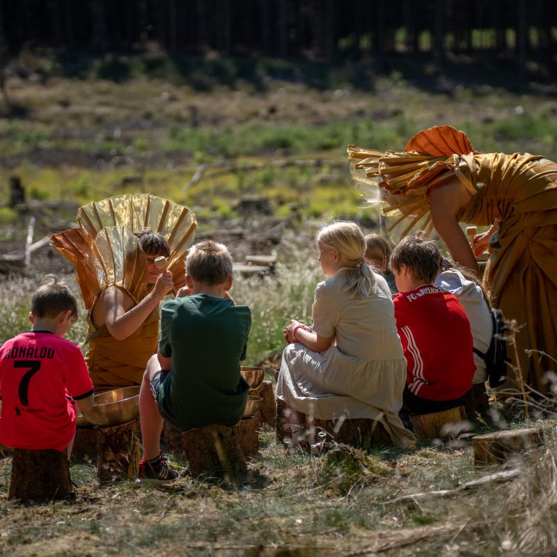 DROJ JORD er en sanseforestilling, hvor du har mulighed for at komme helt tæt på naturen. På turen møder du enten Moder Jord, Kiselalgesangerne eller Naturens Skatte.